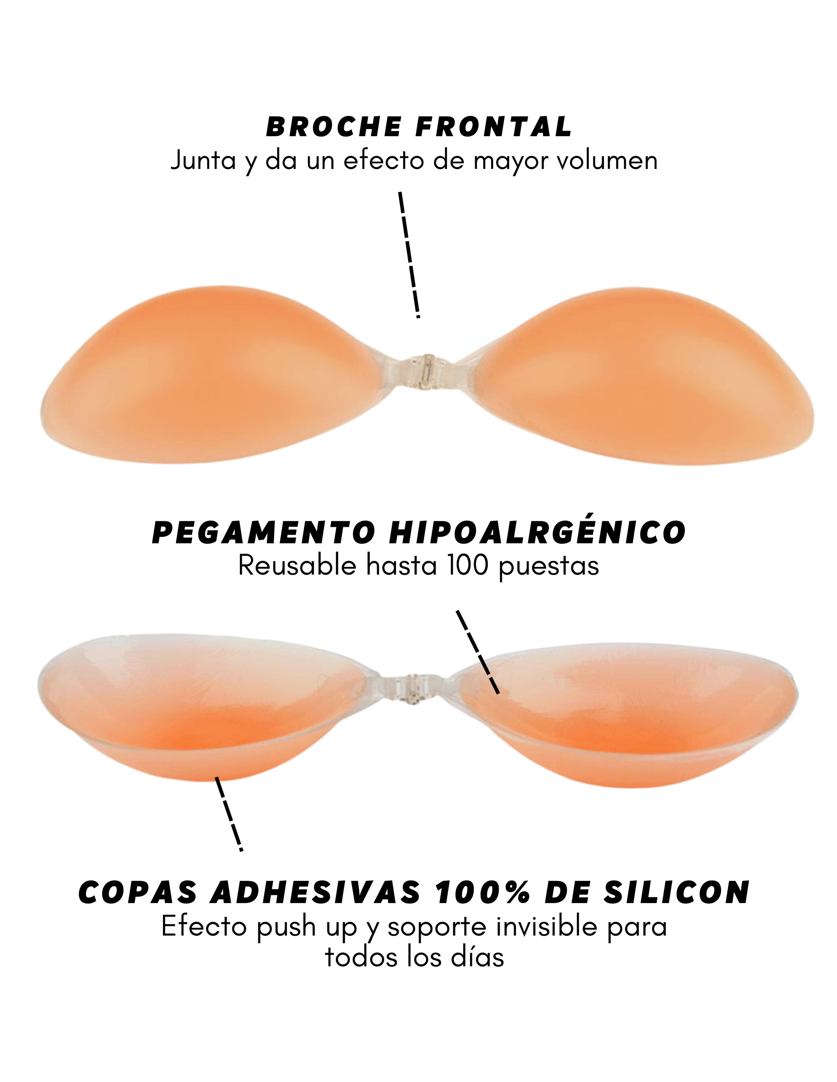 El silicone Bra es una muy buena opción para lucir un escote de impacto, el único inconveniente que le vi es que después de unos usos el adhesivo (pegado al broche) empieza a caerse, por lo que ya no hay el mismo soporte.